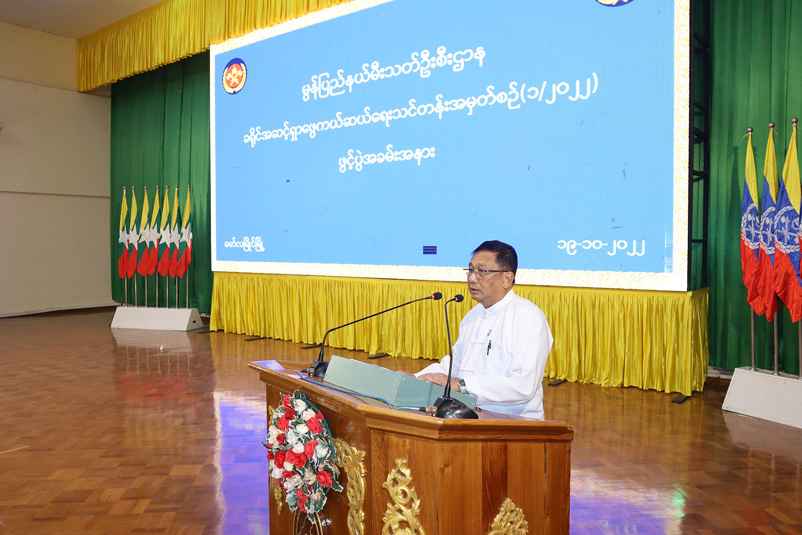 မွန်ပြည်နယ်အတွင်း ဌာဆိုင်ရာများ၏ လုပ်ငန်းဆောင်ရွက်မှု အခြေအနေများနှင့် ပတ်သက်၍ လုပ်ငန်းညှိနှိုင်း အစည်းအဝေးကို ယနေ့မွန်းလွဲပိုင်းက ပြည်နယ်အစိုးရအဖွဲ့ရုံး၊ အောင်ဆန်းခန်းမ၌ ကျင်းပပြုလုပ်ရာ ပြည်နယ်ဝန်ကြီးချုပ်က ဒေသတွင်း လူမှုစီးပွားဘဝဘဝဖွံ့ဖြိုးတိုးတက်စေရေးနှင့် ပြည်သူများစားရေရိက္ခာ ဖူလုံမှုရှိစေလေး အထူးအလေးပေး ဆောင်ရွက်ပေးကြရမည် ဖြစ်ကြောင်း၊ မြို့တွင်းသန့်ရှင်းသာယာလှပစေရေးအတွက် အမှိုက်များ စနစ်တကျစွန့်ပစ်စေရေးနှင့် ရေစီးရေလာ ကောင်းမွန်စေရေး တို့ကိုလည်း ပေါင်းစပ်ညှိနှိုင်း ဆောင်ရွက်ကြရန် လိုအပ်ကြောင်း၊ ရုံးဌာနများ ဥပတိရုပ်ကောင်းမွန်စေရေး၊ ရထားဘူတာများ၊ အဝေးပြေးကားဝင်းများနှင့် ယဉ်ရပ်နားရေးစခန်းများ၏ ပရိဝုဏ်အတွင်း၊ အပြင် သန့်ရှင်းသပ်ရပ်စေရေးနှင့် အများပြည်သူ စိတ်ချမ်းမြေ့စွာ ခရီးသွားလာနိုင်ကြစေရေး ဆောင်ရွက်ကြရန် လိုကြောင်း၊ ယဉ်အန္တရာယ်၊ လမ်းအန္တရာယ်ကင်းရှင်းစေရေး စနစ်တကျဆောင်ရွက်ကြရန်နှင့် ယဉ်စည်းကမ်း၊ လမ်းစည်းကမ်း လိုက်နာကြစေရေး ကြပ်မတ်ဆောင်ရွက်ကြရန် လိုကြောင်း၊ ဌာနပိုင်မြေများကို ကျူးကျော်နေထိုင်မှု မရှိစေရေးနှင့် ကျူးကျော်နေထိုင်မှုများရှိပါက ဥပဒေနှင့်အညီ ဖြေရှင်းဆောင်ရွက်ကြမည် ဖြစ်ကြောင်း၊ ဌာနများအနေအနေဖြင့် တည်ဆဲဥပဒေ၊ နည်းဥပဒေများကို လေးစားလိုက်နာပြီး လုပ်ထုံးလုပ်နည်းများအညီ ဆောင်ရွက်ကြရန်လိုကြောင်း၊ နိုင်ငံ့စီးပွားမြှင့်တင်ရေးရန်ပုံငွေမှ မတည်ထောက်ပံ့ငွေဖြင့် စိုက်ပျိုးရေး၊ မွေးမြူရေးလုပ်ငန်းများ၊ ပြည်သူလူထုကို တိုက်ရိုက်အကျိုးပြုစေသည့်အသေးစား၊ အငယ်စားနှင့် အလတ်စား (MSME) လုပ်ငန်းများကို ဖော်ဆောင်၍ ကောင်းမွန်သောစီးပွားရေး အခြေအနေများဖန်တီးနိုင်ရန်နှင့် နိုင်ငံ၏စီးပွားရေး ဖွံ့ဖြိုးတိုးတက်ရေးတို့အတွက် အားလုံးဝိုင်းဝန်းဆောင်ရွက်ပေးကြရန် ပြောကြားသည်။