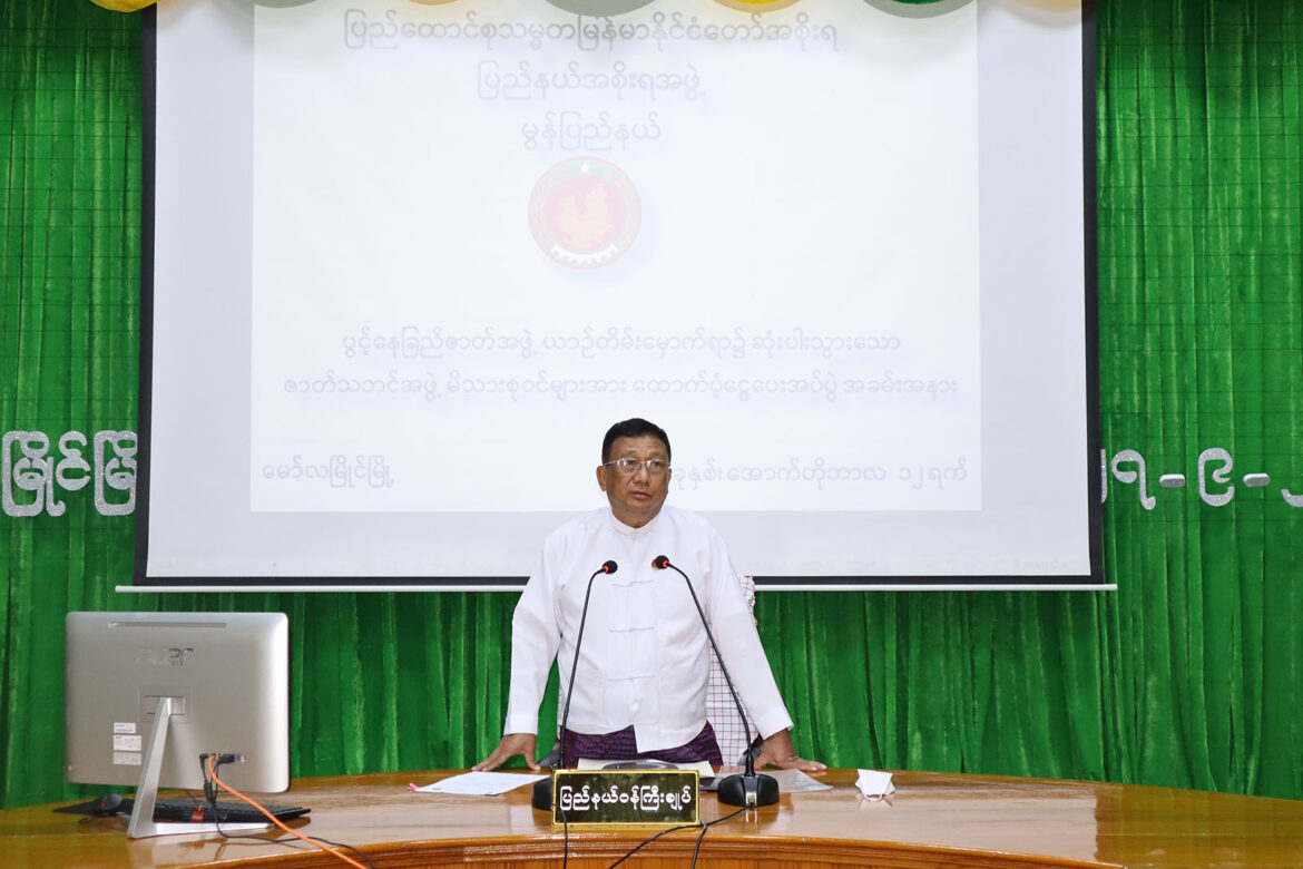 အောက်တိုဘာလ ၅ ရက်နေ့က မြဝတီ- ကော့ကရိတ်အာရှလမ်းမကြီးပေါ်တွင် ယဉ်မတော်တဆမှု ဖြစ်ပွားခဲ့သည့် မြန်မာနိုင်ငံ သဘင်အစည်းအရုံးဝင် မော်လမြိုင်မြို့၊ ပွင့်နေခြည်ဇတ်အဖွဲ့မှ သဘင်အဖွဲ့မိသားစုဝင်များအား ထောက်ပံ့ငွေပေးအပ်ပွဲ အခမ်းအနားကို ၂၀၂၂ ခုနှစ်၊ အောက်တိုဘာလ ၁၂ ရက်နေ့၊ နံနက်ပိုင်းက ပြည်နယ်အစိုးရအဖွဲ့ရုံး အောင်ဆန်းခန်းမ၌ ကျင်းပပြုလုပ်ရာ ပြည်နယ်ဝန်ကြီးချုပ် ဦးဇော်လင်းထွန်း၊ ပြည်နယ်ဝန်ကြီးများ၊ သဘင်အစည်းအရုံးမှ တာဝန်ရှိသူများ တက်ရောက်သည်။
