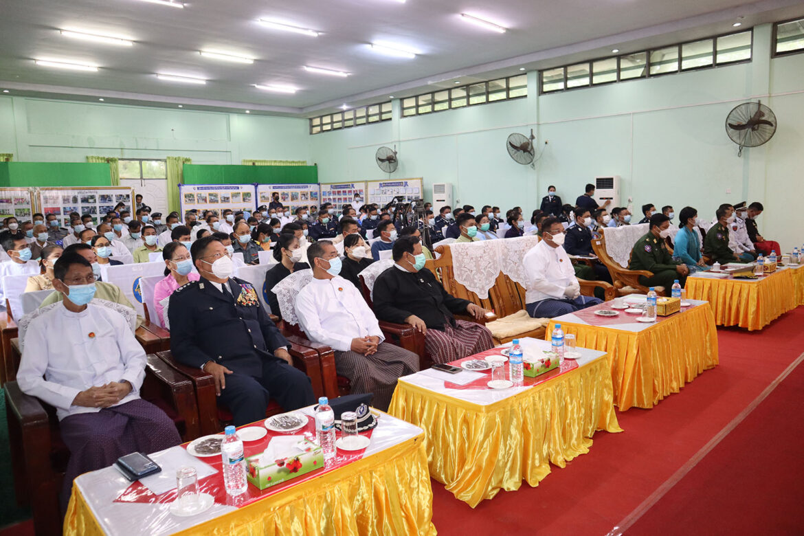 အခမ်းအနားတွင် ပြည်နယ်ဝန်ကြီးချုပ်က မြန်မာနိုင်ငံရဲတပ်ဖွဲ့ဟာ ပြည်သူ့အကျိုးစီးပွားကို ကာကွယ်စောင့်ရှောက်လာခဲ့တာဟာ ယနေ့ဆိုလျှင် (၅၈)နှစ် ပြည့်မြောက်ခဲ့ပြီဖြစ်ပါကြောင်း၊ ခေတ်နဲ့အညီ ရဲတပ်ဖွဲ့ကို တိုးချဲ့ပြင်ဆင်ဖွဲ့စည်းပြီး အင်တာပိုလ် အဖွဲ့ချုပ်နှင့် အဖွဲ့ဝင်နိုင်ငံများမှာ နိုင်ငံတကာရဲလုပ်ငန်းဆိုင်ရာများ ပူးပေါင်းဆောင်ရွက်မှု၊ မှုခင်းသတင်းအချက်အလက်များဖလှယ်မှုများ၊ နိုင်ငံဖြတ်ကျော်မှုခင်း တိုက်ဖျက် ရေးဆိုင်ရာ လုပ်ငန်းစဉ်များကိုလည်း ပူးပေါင်းဆောင်ရွက်လျက်ရှိသည့်အပြင် သက်ဆိုင်ရာ ရဲတပ်ဖွဲ့များ၏ ကဏ္ဍအလိုက် ရည်မှန်းချက်တာဝန်များကို ချမှတ်အကောင်အထည်ဖေါ်ဆောင်ရွက်လျက် ရှိတာကိုတွေ့ရမှာဖြစ်ကြောင်း၊ အကြမ်းဖက်မှုများအပါဝင် အမျိုးစုံသောမှုခင်းများကို ထိရောက်စွာ ထိန်းချုပ်နိုင်ရေး ကြိုးပမ်းရာမှာ ရဲတပ်ဖွဲ့နဲ့အတူ တရားစီရင်ရေးကဏ္ဍအပါအဝင် သက်ဆိုင်ရာ တာဝန်ရှိသော အဖွဲ့အစည်းအသီးသီးကလည်း ကဏ္ဍပေါင်းစုံမှ ပူးပေါင်းဆောင်ရွက် ဖို့လည်း အထူးအရေးကြီးကြောင်း၊ ရဲတပ်ဖွဲ့ဝင်များရဲ့ လူ့စွမ်းအားအရင်းအမြစ် ဖွံ့ဖြိုးတိုးတက်ရေးကိုလည်း စဉ်ဆက်မပြတ် ဆောင်ရွက်ပေးနေရမှာ ဖြစ်သလို လုပ်ငန်း အပေါ်မှာ တာဝန်ကျေပွန်စွာ မှန်ကန်မွန်မြတ်တဲ့ စိတ်စေတနာကောင်းနဲ့ဆောင်ရွက် သွားဖို့လည်း တိုက်တွန်းလိုကြောင်း၊ လုံခြုံရေးဆောင်ရွက်နေတဲ့ တပ်ဖွဲ့ဝင်များကို ပစ်မထားဘဲ တပ်ဖွဲ့ဝင်နဲ့ မိသားစုများထံသို့ သွားရောက်ထိတွေ့ အားပေးဆောင်ရွက်ခဲ့ပြီး စားနပ်ရိက္ခာများ၊ စက်သုံးဆီနှင့် အခြားလိုအပ်သည်များကို ထောက်ပံ့ပေးလျက်ရှိသည့်အပြင် သက်စွန့်ကျိုးပမ်း တာဝန်ထမ်းရွက်ခဲ့သူများကို ထိုက်ထိုက်တန်တန် မှတ်တမ်းတင် ဂုဏ်ပြု ချီးမြှင့်ခဲ့ကြောင်း၊ ဥပဒေကို ကိုင်တွယ်အသုံးပြုရာမှာ ပွင့်လင်းမြင်သာပြီး တာဝန်ယူမှု၊ တာဝန်ခံမှုပြုနိုင်တဲ့ ရဲတပ်ဖွဲ့ဝင်ကောင်းများဖြစ်အောင် ကြိုးပမ်းကာ ပြည်သူလူထုရဲ့အကျိုးစီးပွားကို ကာကွယ်စောင့်ရှောက်ရာမှာလည်း ရဲလုပ်ငန်း၊ ဥပဒေလုပ်ထုံးလုပ်နည်း ကျွမ်းကျင်မှု၊ ရိုးသားဖြောင့်မတ်မှု၊ သမာသမတ် ရှိမှုတို့နဲ့ ဖြည့်ဆည်းဆောင်ရွက်ပေးကြရန် ပြောကြားသည်။
